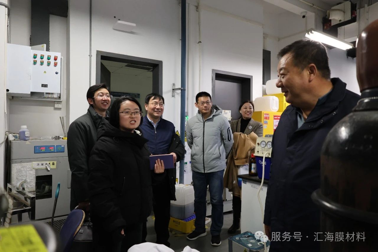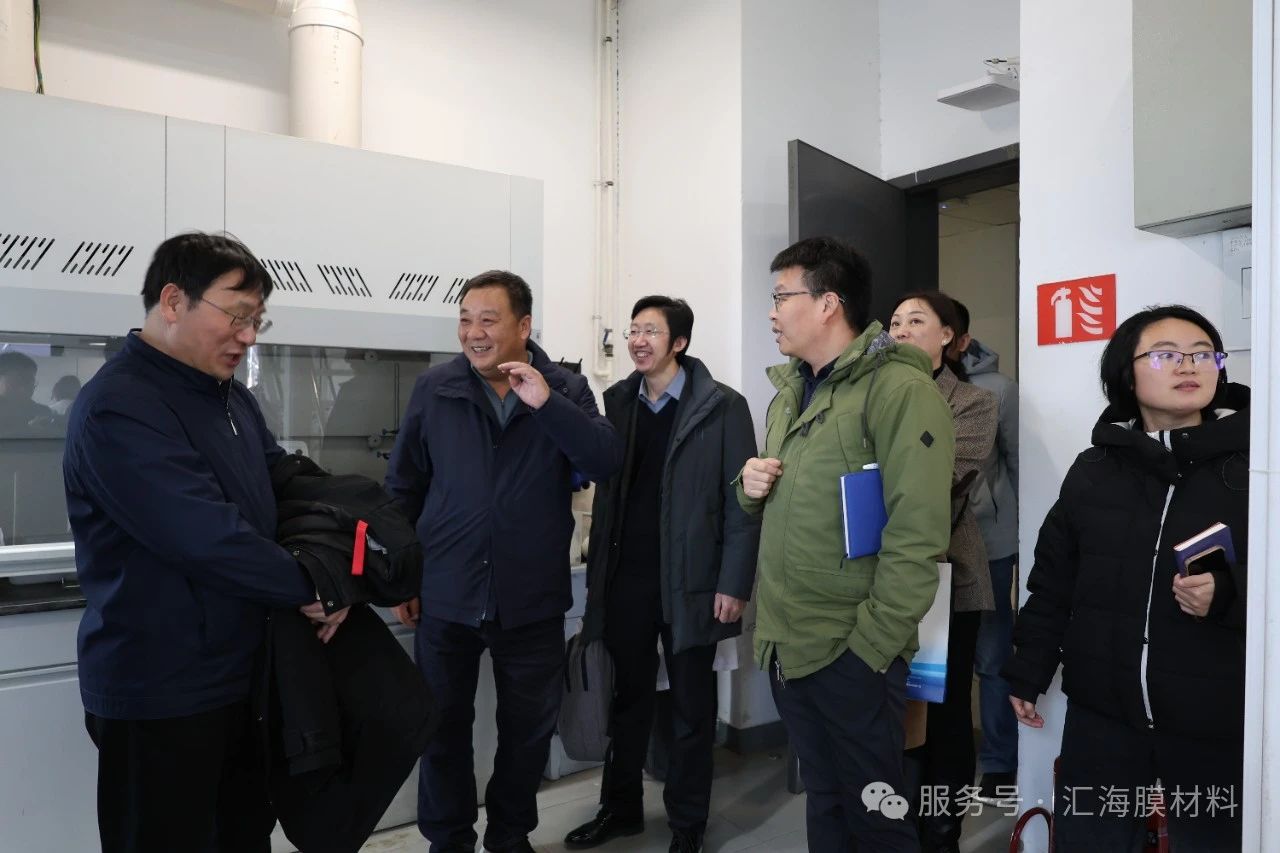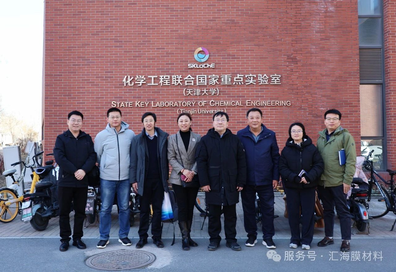 天津大學化工學院的部分青年教師和博士生同學們,山東匯海膜材料科技有限公司董事張建菊、副總經理高舉亮參加調研活動。